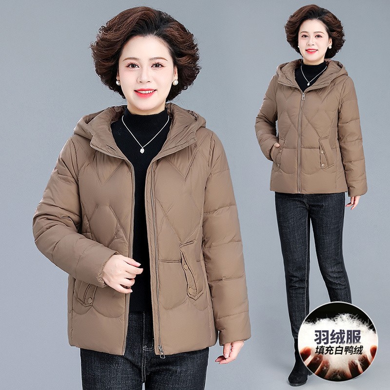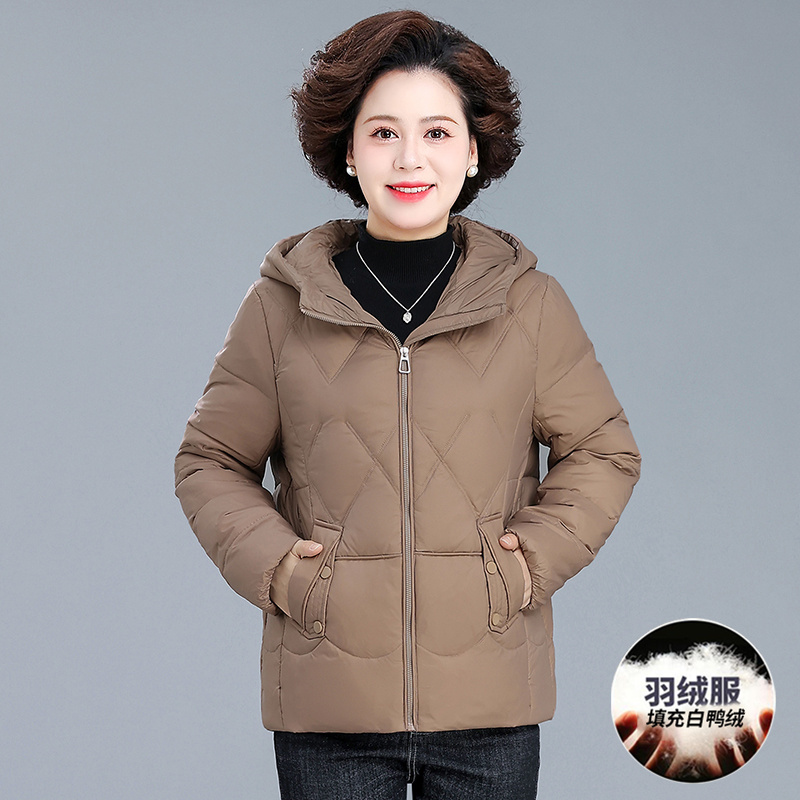 中年妈妈冬装白鸭绒羽绒服短款保暖棉袄中老年人女秋冬外套小个子