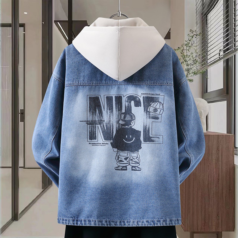 牛仔夹克男初中学生2025秋款青少年连帽排扣上衣潮流大童外套外穿