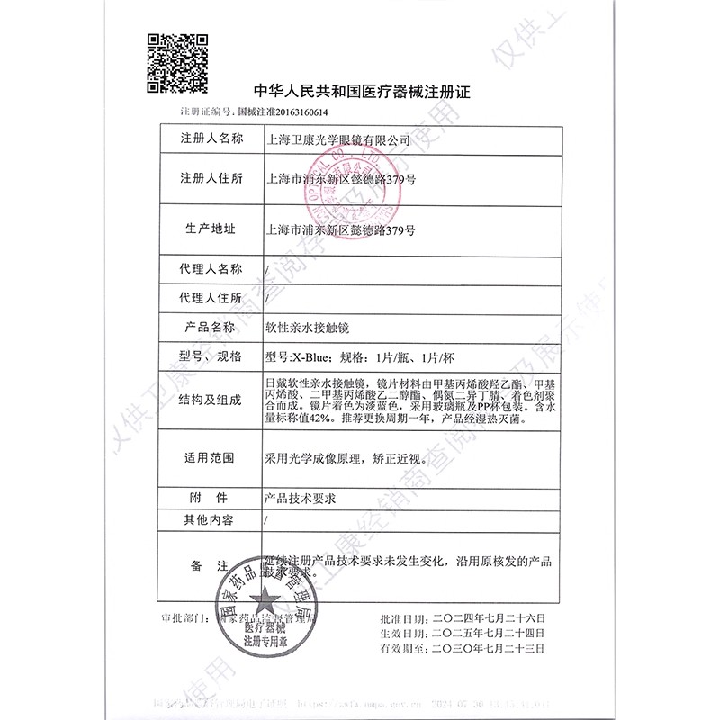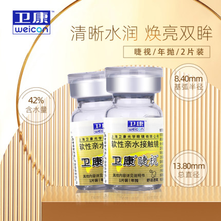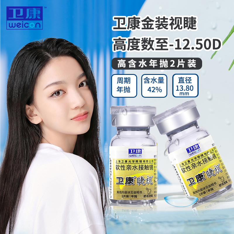 卫康金装睫视x-blue近视隐形眼镜年抛高度数2片官方正品高含水