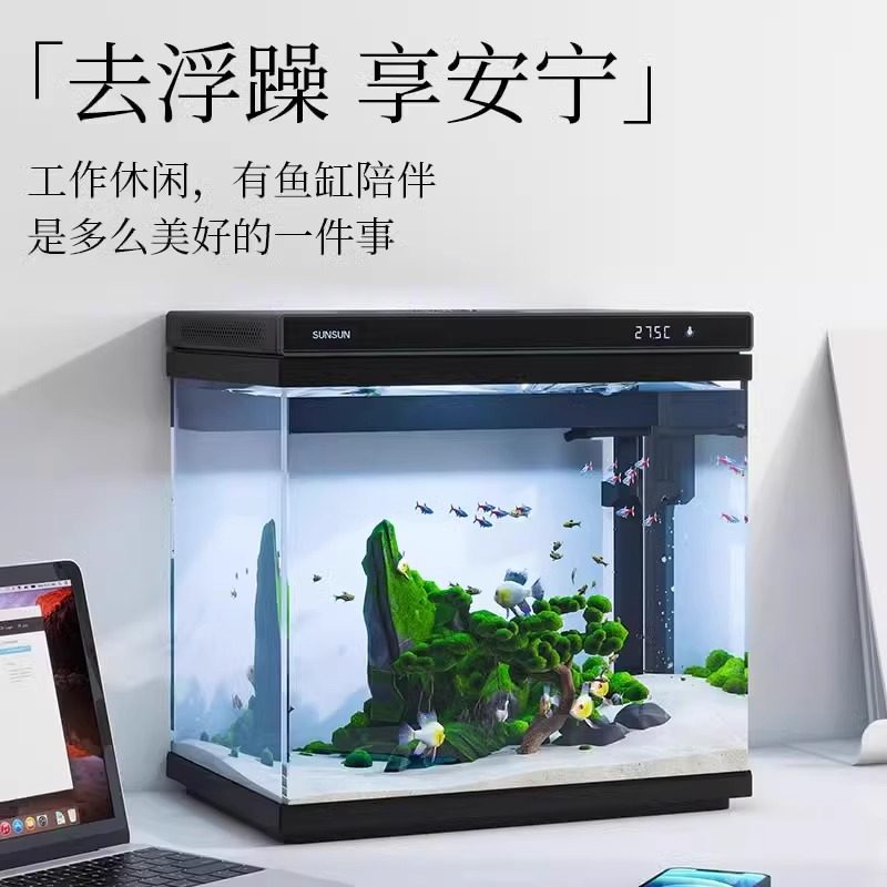 森森超白玻璃鱼缸客厅小型家用水族箱生态免换水过滤制氧金鱼缸