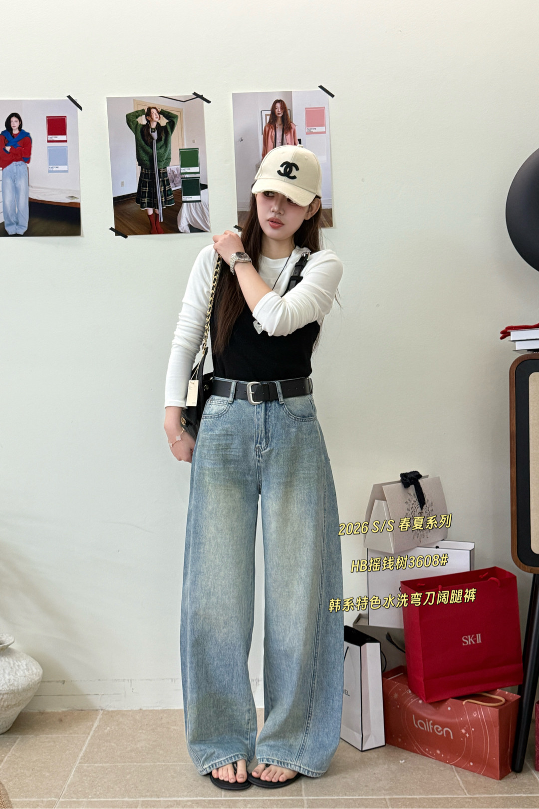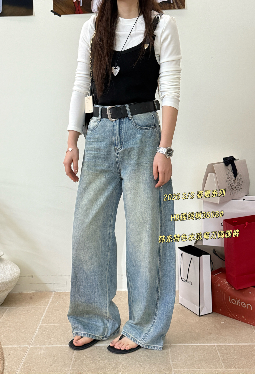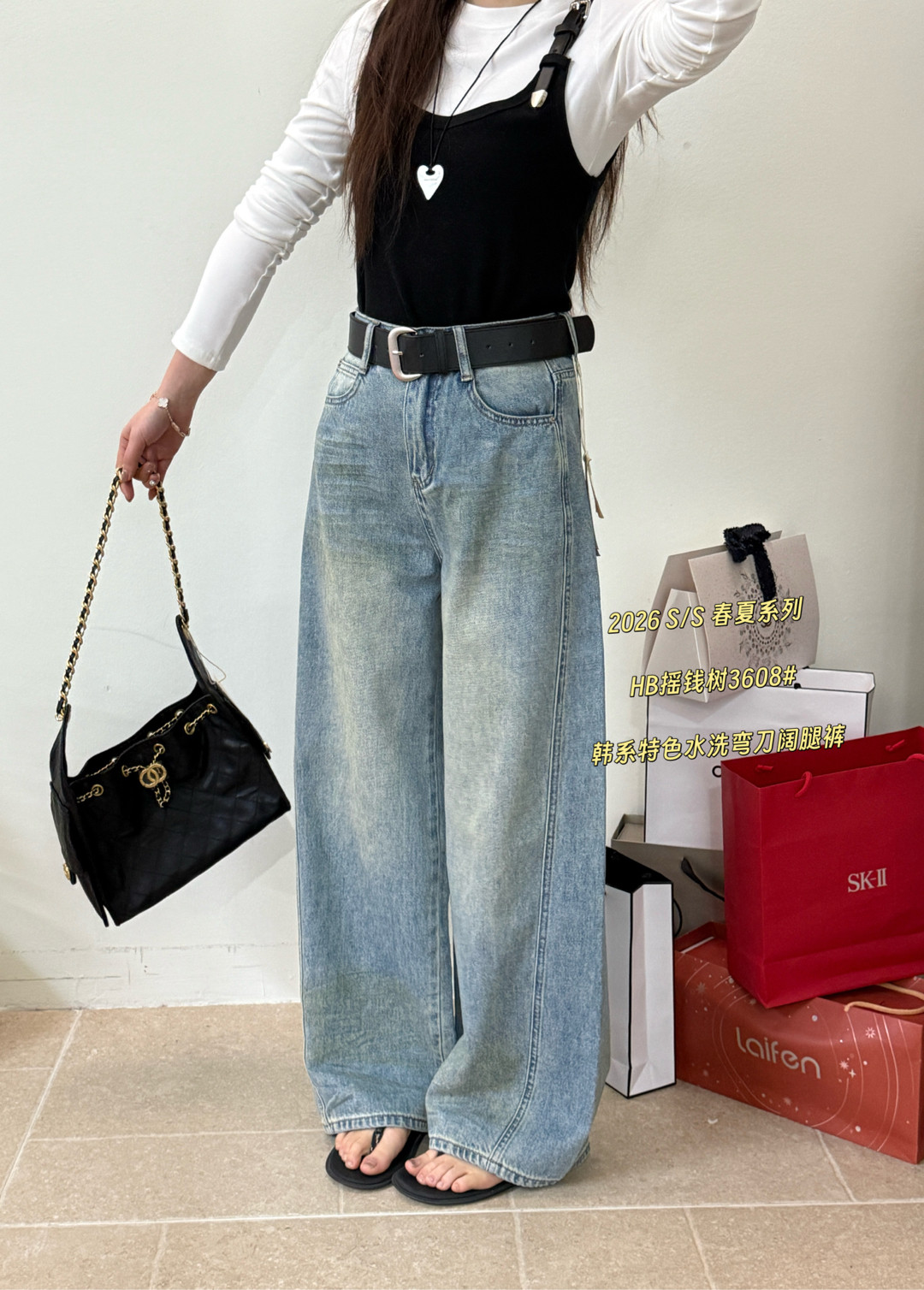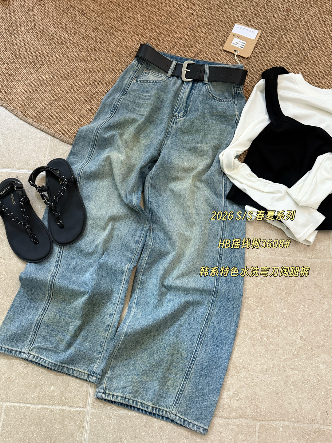3608春季新款韩版气质百搭休闲特色水洗弯刀阔腿裤显瘦休闲牛仔裤