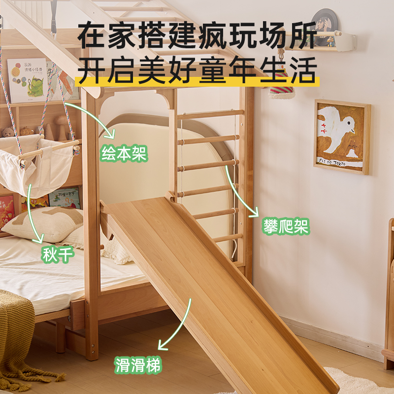 colorfree儿童床树屋床全实木榉木冰棍床男孩女孩蒙氏地台床趣玩