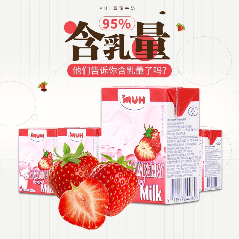 MUH甘蒂牧场牛奶脱脂学生奶草莓巧克力香蕉味早餐奶调味乳进口奶