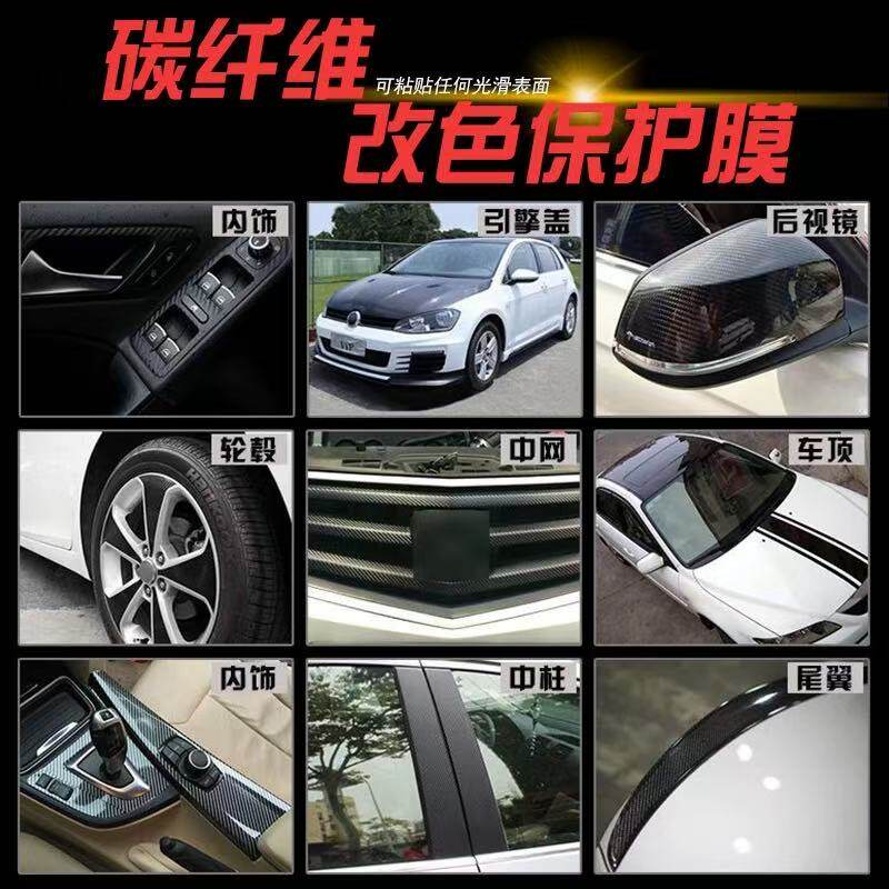 汽车改色膜PET锻造碳纤维贴纸内饰中控亮黑色后视镜车身顶贴膜&8