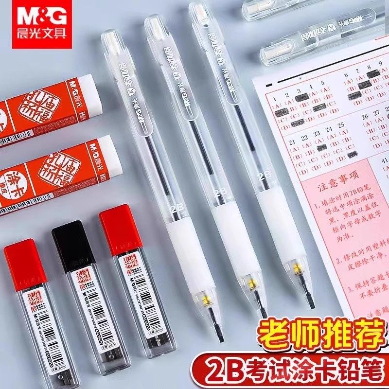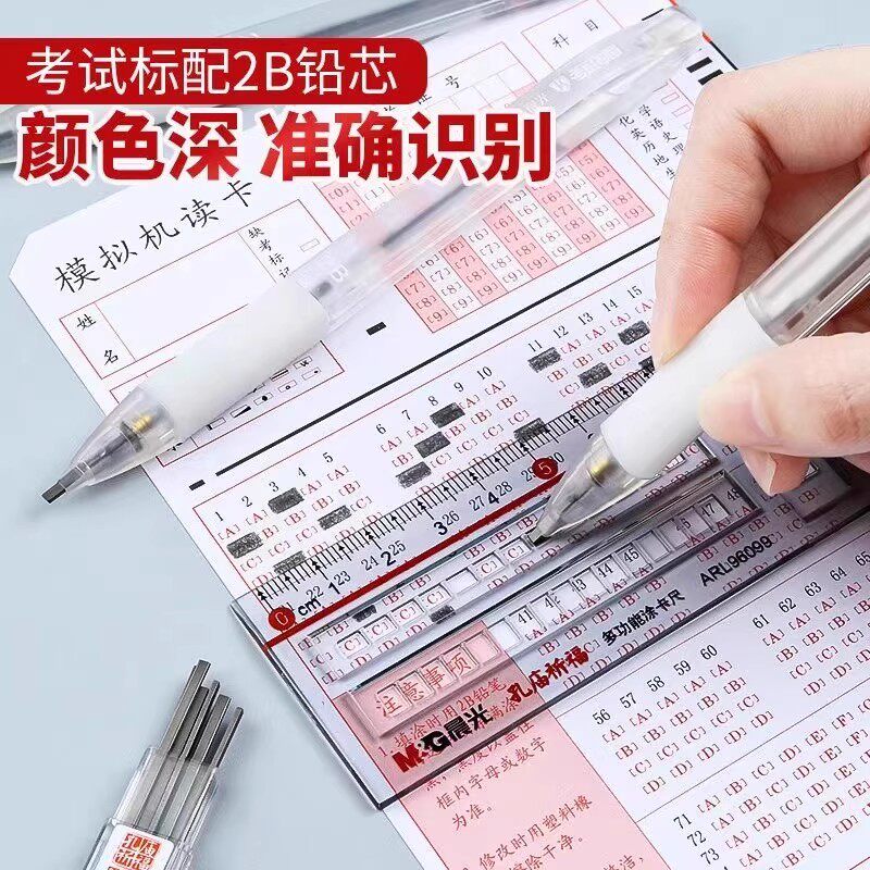 晨光透明2B涂卡笔可视透明杆考试专用答题卡自动铅笔填涂笔2B铅芯橡皮涂卡尺高考公务员考研学习文具用品套装