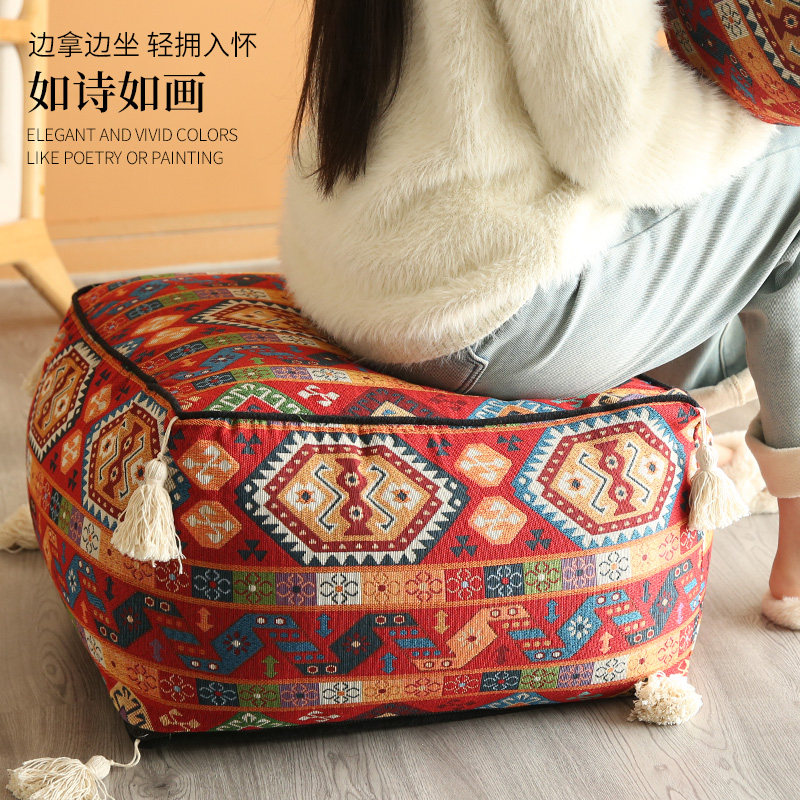 波西米亚风复古方形墩墩垫客厅沙发懒人坐墩阳台飘窗蒲团垫可拆洗