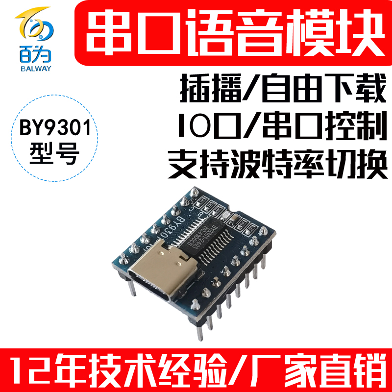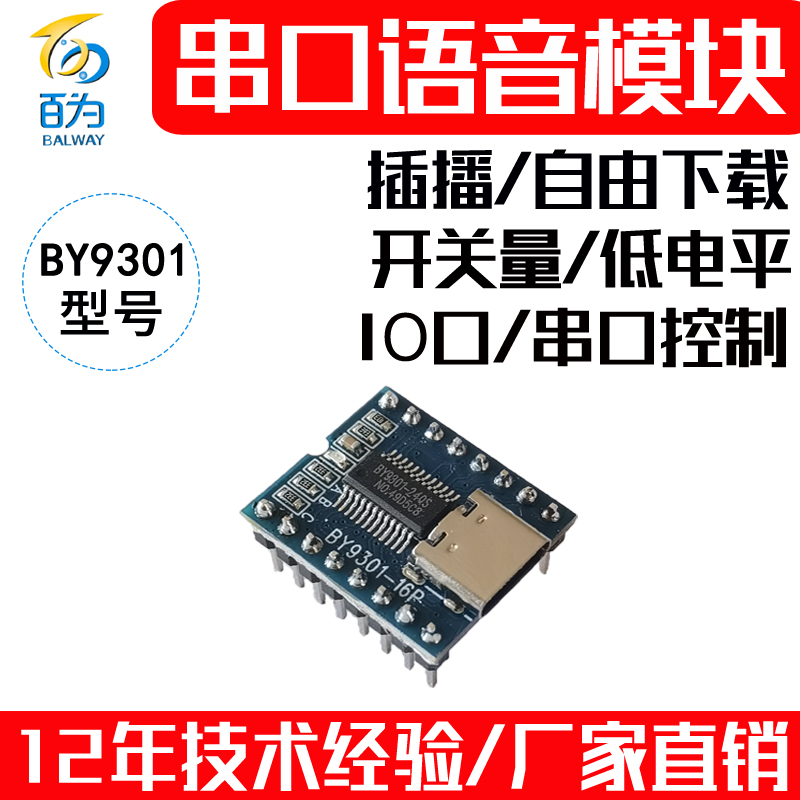 串口语音模块MP3芯片音频播放板 可跟换声音播报提示 BY9301-16P