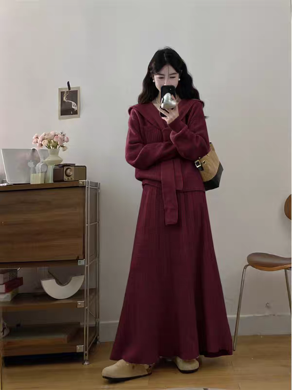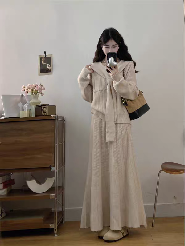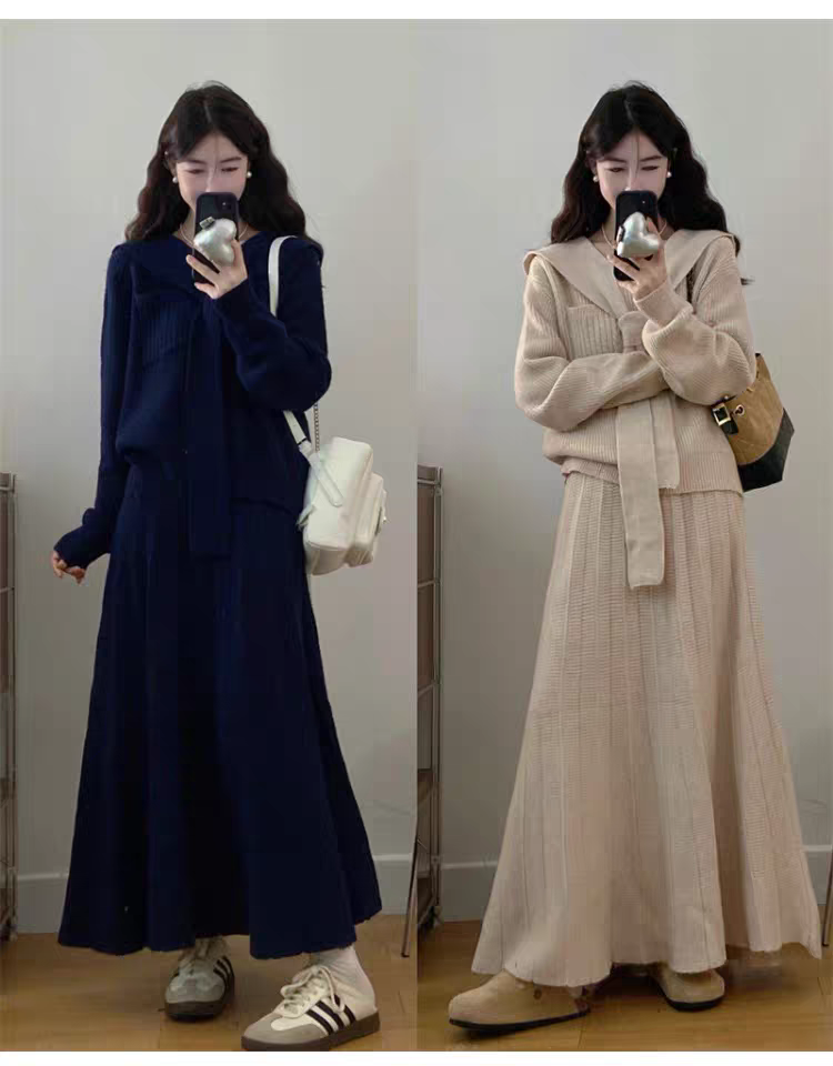 韩版大码秋季胖MM法式披肩针织开衫毛衣半身长裙两件套装女装秋季