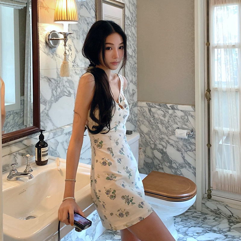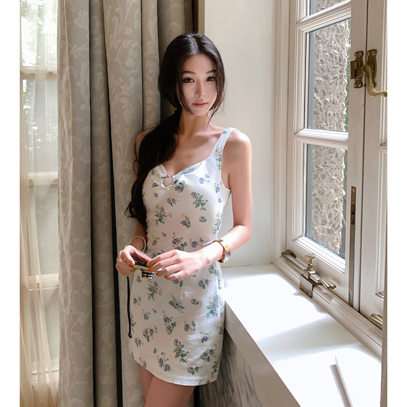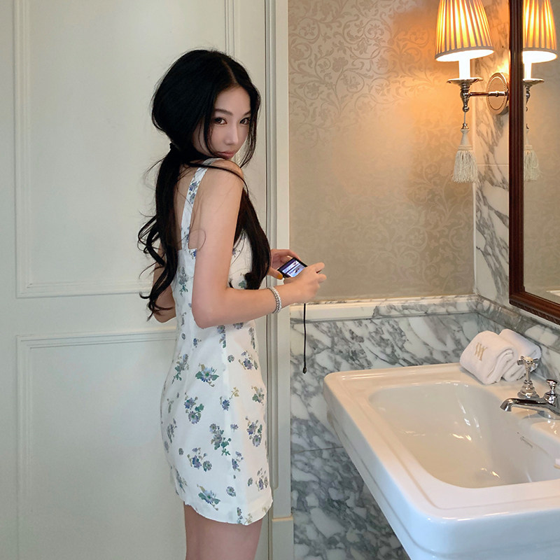 Boamarket 碎花连衣裙清新温柔修身性感印花舒适透气无袖吊带短裙