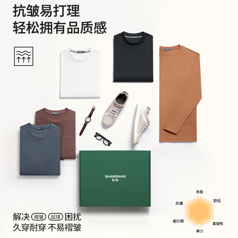杉杉长袖T恤男士纯棉2025秋季新款圆领套头纯色t内搭上衣打底衫男