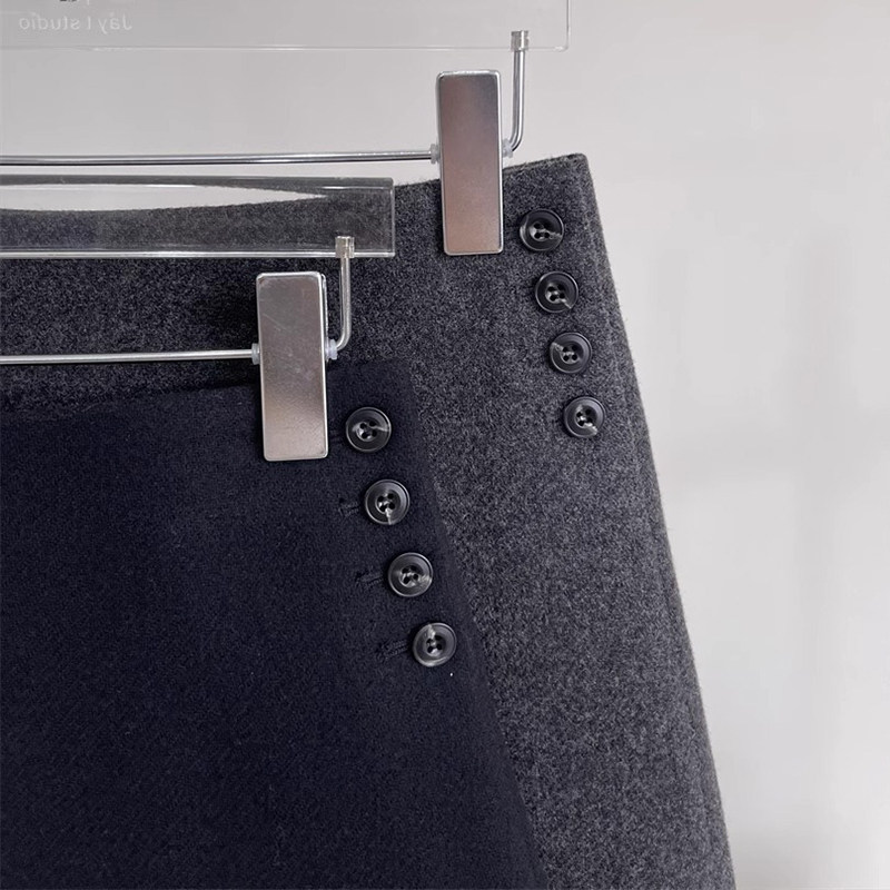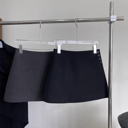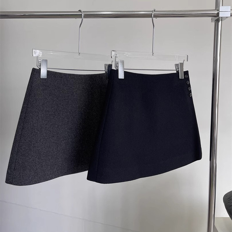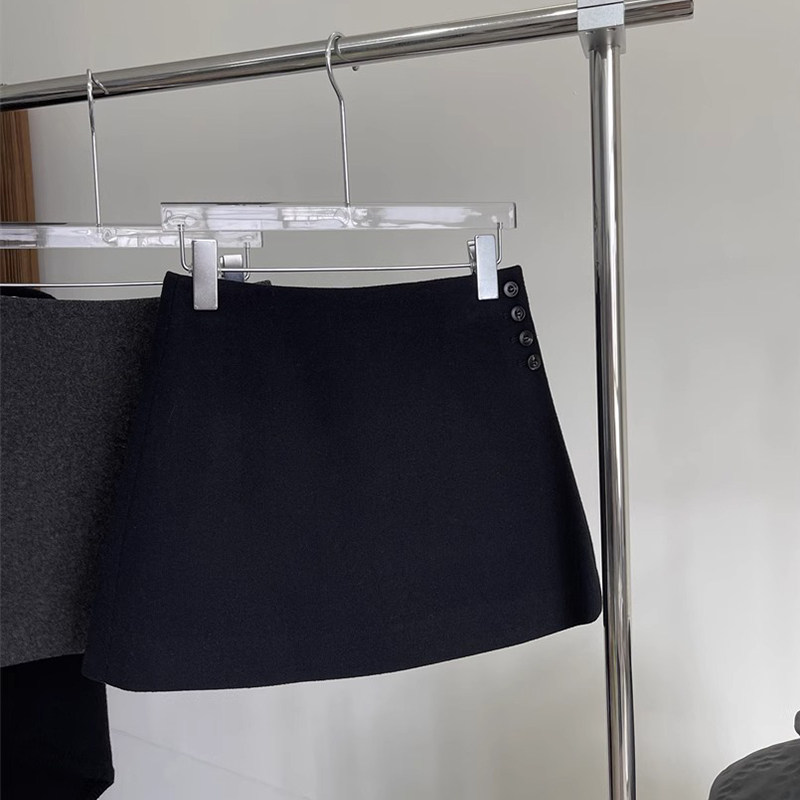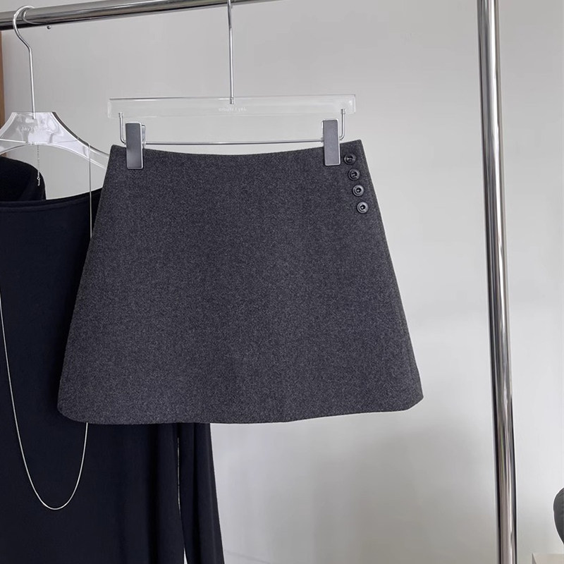 羊毛呢半身裙女2025秋冬新款黑色高腰气质防走光内衬灰色a字短裙