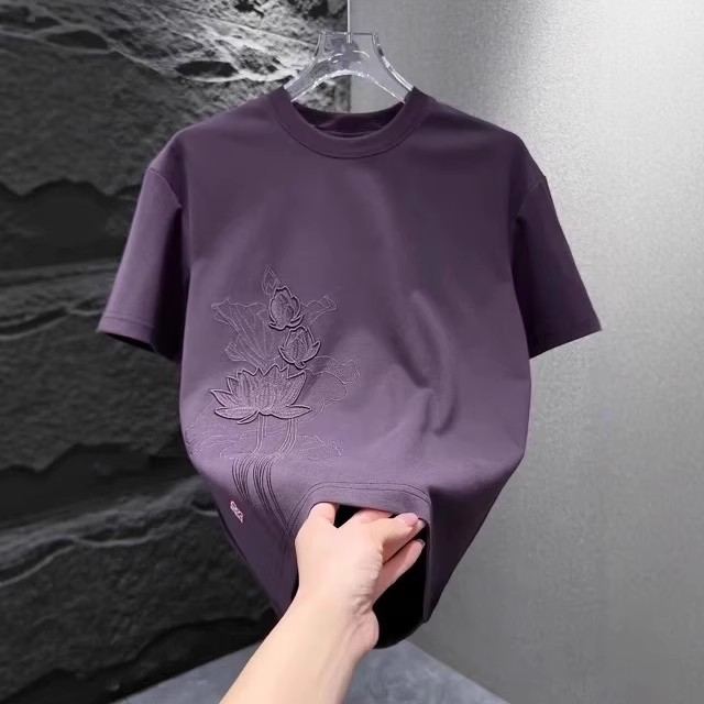 夏季新款时尚设计感国风刺绣短袖T恤男士圆领休闲百搭半袖打底衫
