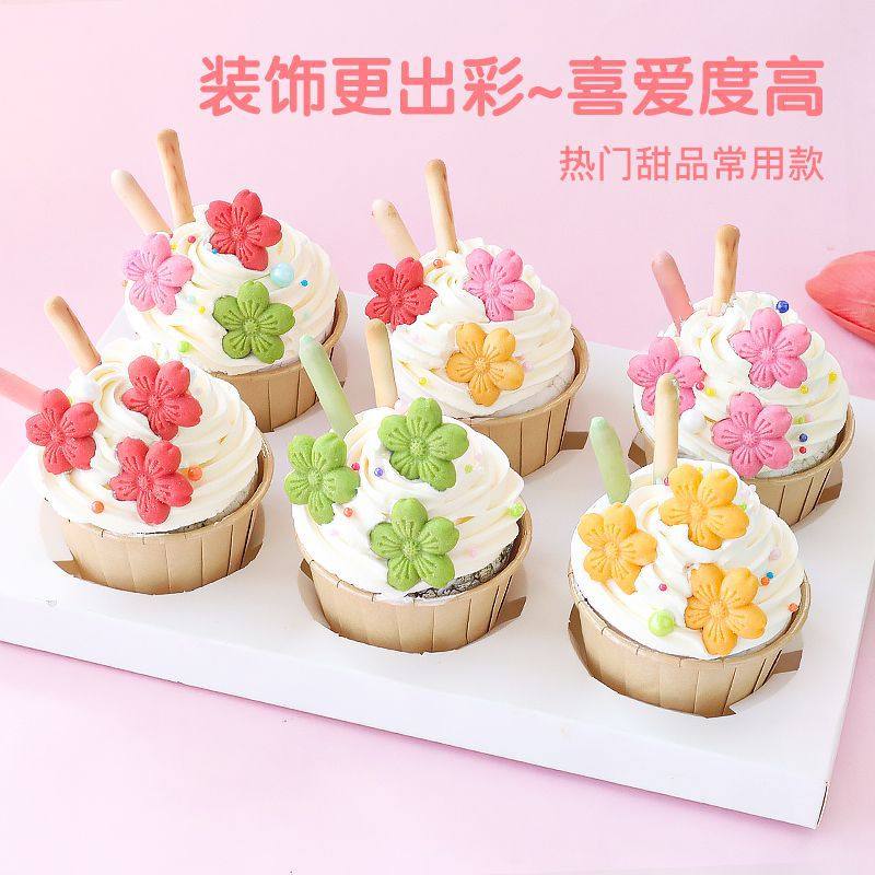 网红樱花饼干蛋糕装饰摆件粉色花朵混合装甜品纸杯冰淇淋点缀插件