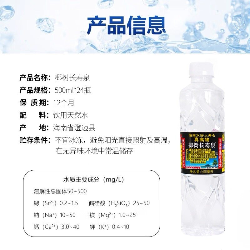椰树火山岩500ml*24瓶装饮用天然矿泉水外宾接待用水整箱包邮