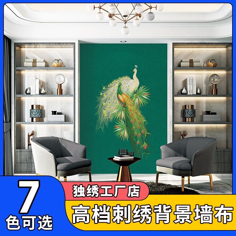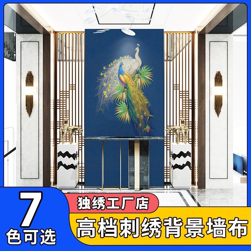 独秀背景墙布玄关刺绣独绣客厅走廊进门背景现代档无缝壁布