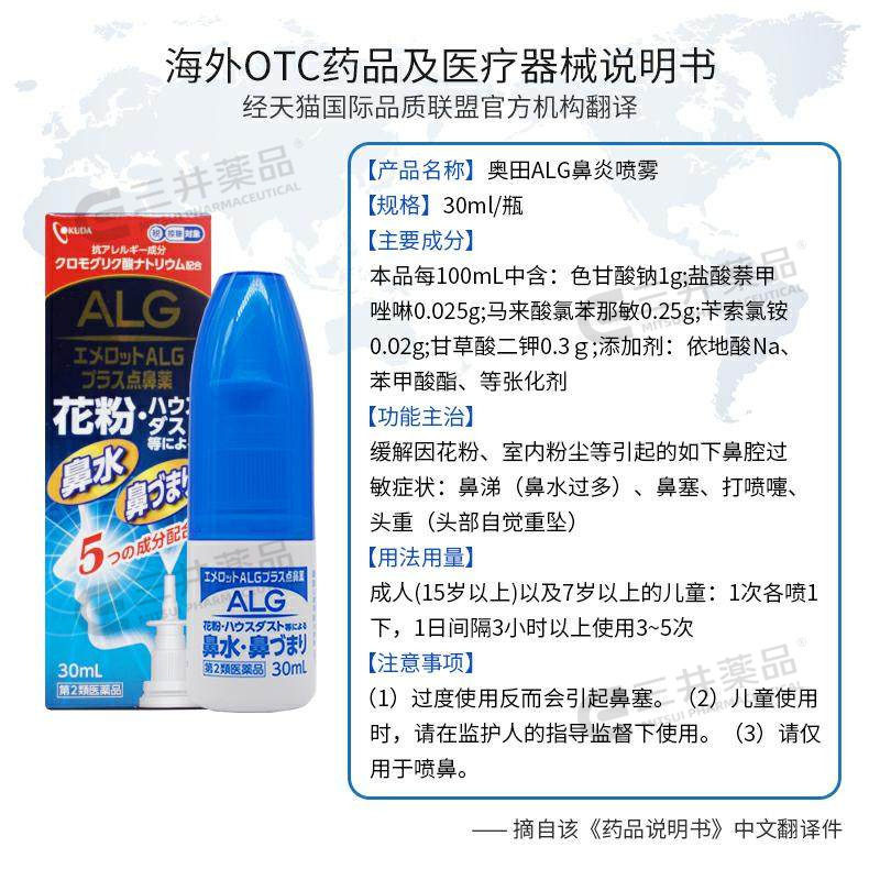 日本进口过敏性鼻炎喷雾喷剂流鼻涕打喷嚏鼻塞通鼻神器鼻炎专用药