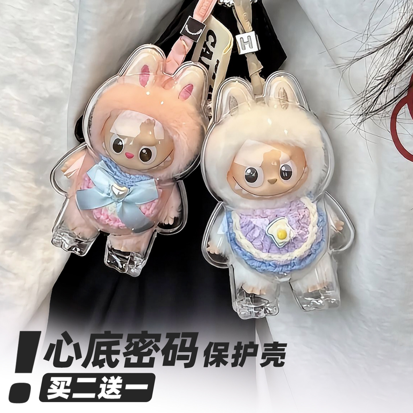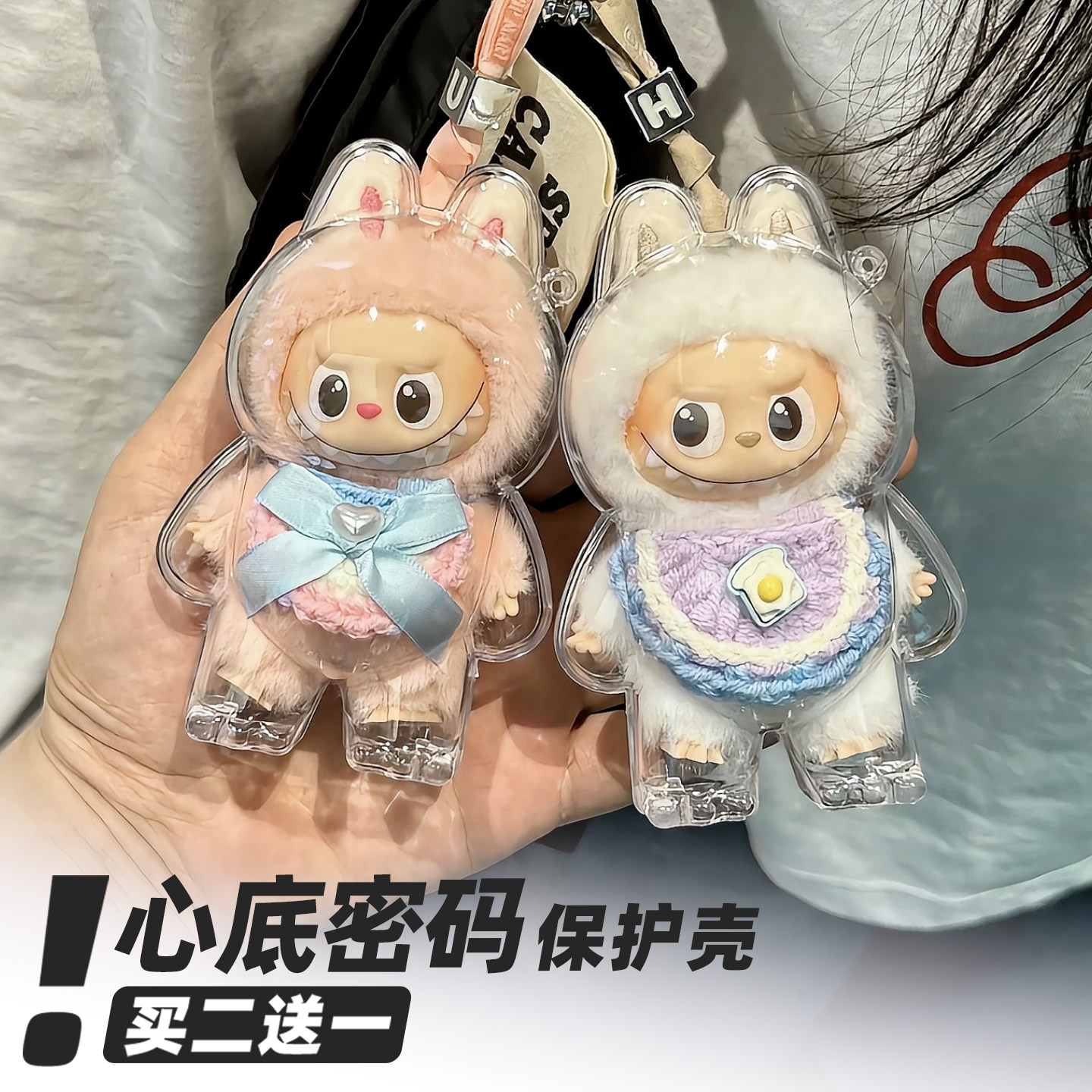 适配labubu拉布布4.0心底密码高清高透亚克力保护壳罩遛娃包挂件