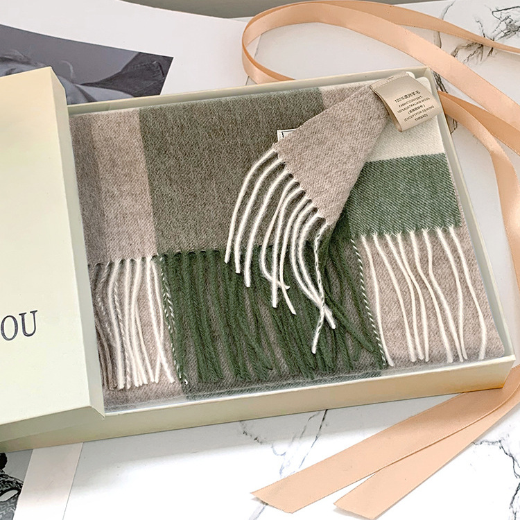 新款上市100%羊毛格子围巾女冬季学生百搭男保暖情侣围脖生日礼物