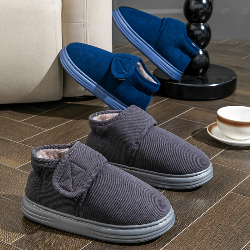 大码男棉拖鞋男款冬季包跟家居室内毛绒保暖中老年人棉鞋男士冬天