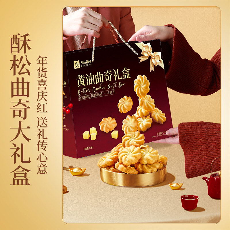 良品铺子黄油曲奇年货节礼盒礼包饼干送人送礼老人小孩零食糕点