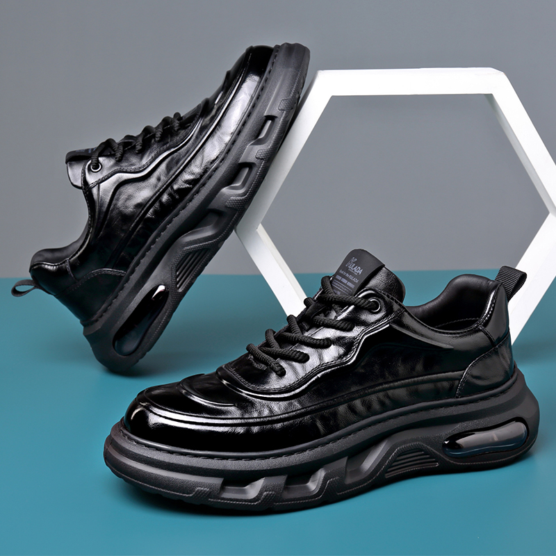 男鞋秋冬款2025新款真皮商务增高休闲皮鞋男士英伦厚底运动板鞋男