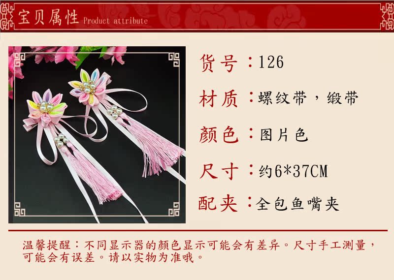 126 复古剑菊手工发夹头饰飘带流苏儿童对夹古风汉服旗袍女童边夹