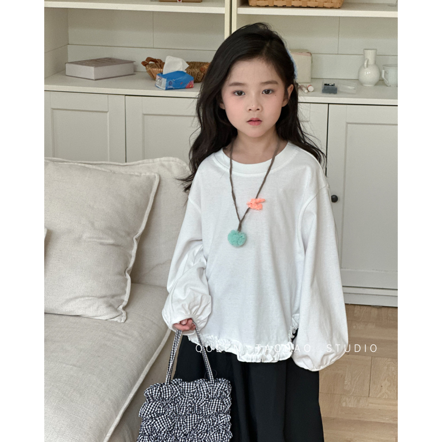 2025春秋女童木耳花边长袖T恤韩国宝宝百搭不规则圆领卫衣打底衫