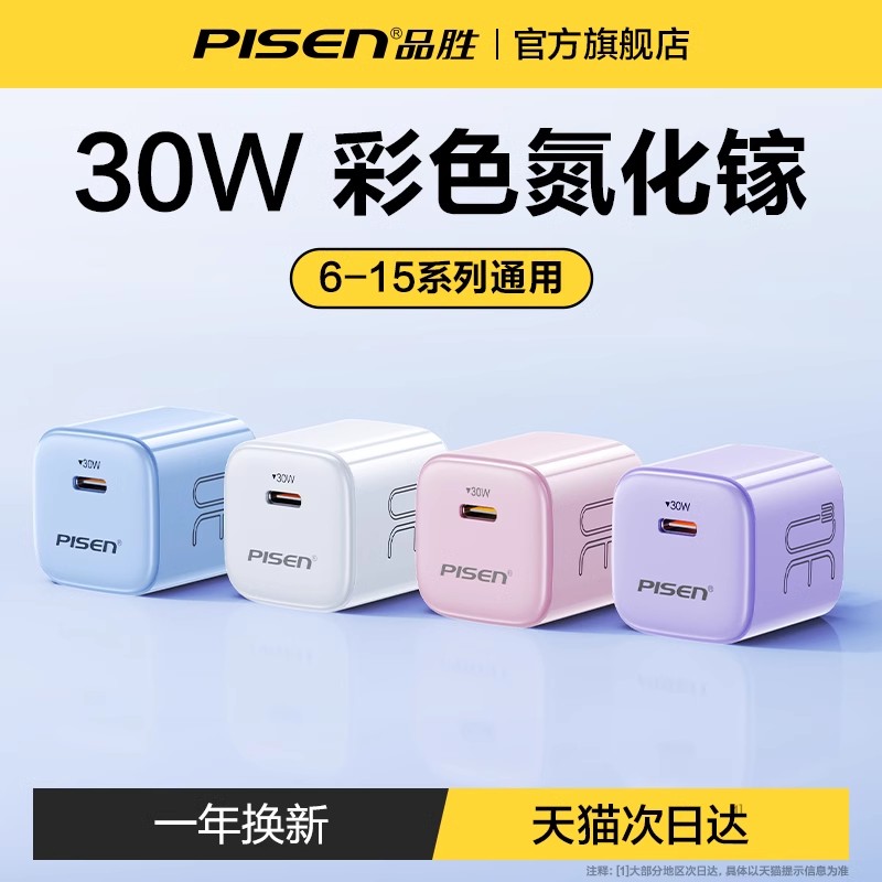 品胜充电器氮化镓30W快充小冰粒pd插头20W充电头双typec手机快充官方正品适用苹果15 iPhone16promax套装ipad