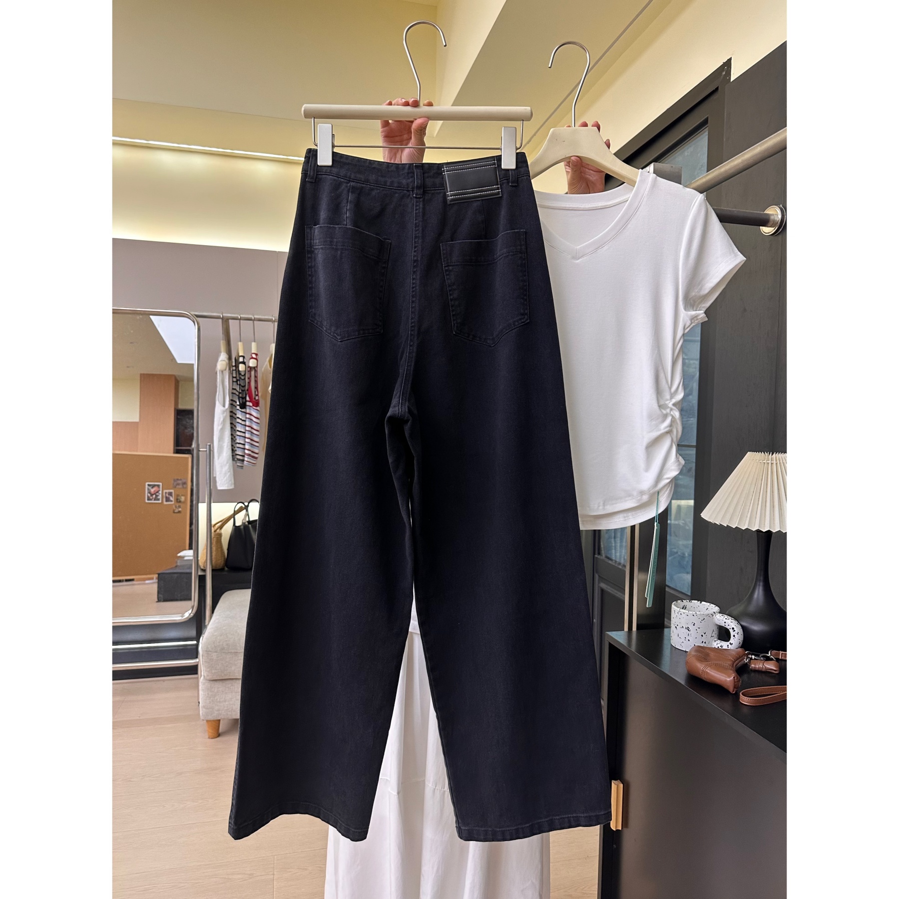 【AT*原单】A5弯刀牛仔裤女黑色阔腿韩版高腰宽松显瘦拖地香蕉裤