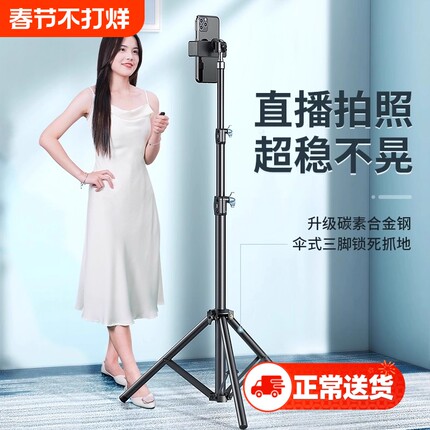手机直播支架自拍杆三脚架带补光灯户外便携拍摄专用神器架子通用视频落地2025新款拍照桌面抖音俯拍一个人拍