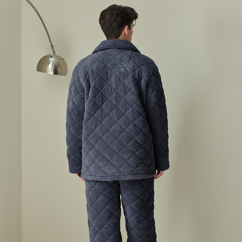 芬腾睡衣男冬季珊瑚绒夹棉袄三层加厚套装保暖法兰绒抗静电家居服