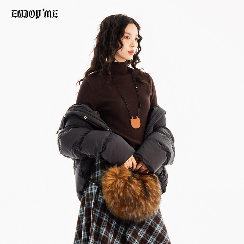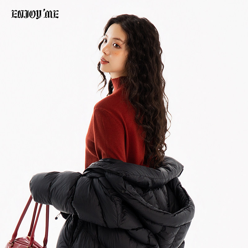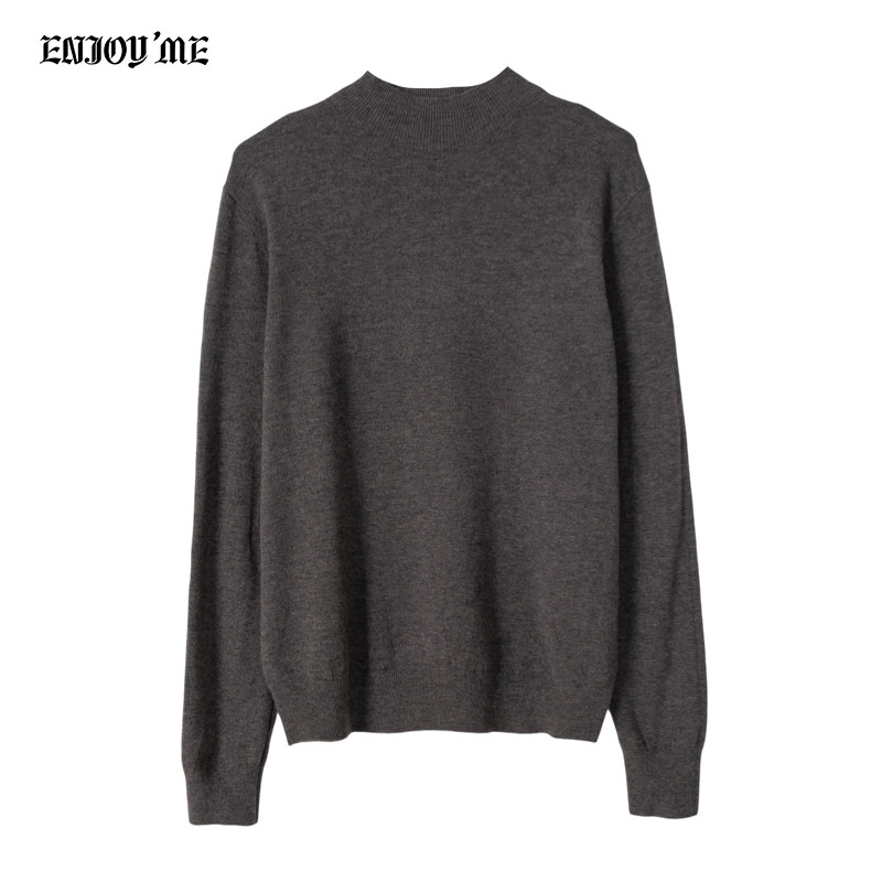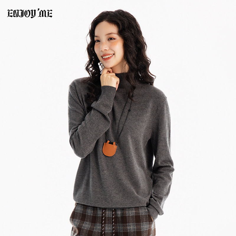 ENJOYME极简风半高领针织衫女秋冬宽松灰色毛衣高级感打底衫上衣