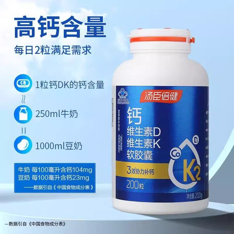 新货 汤臣倍健液体钙200粒钙维生素DK 青少年孕妇钙片中老年 100