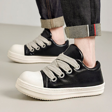 情侣同款板鞋港风厚底皮鞋潮男女时尚鞋子低帮面包鞋休闲高街百搭