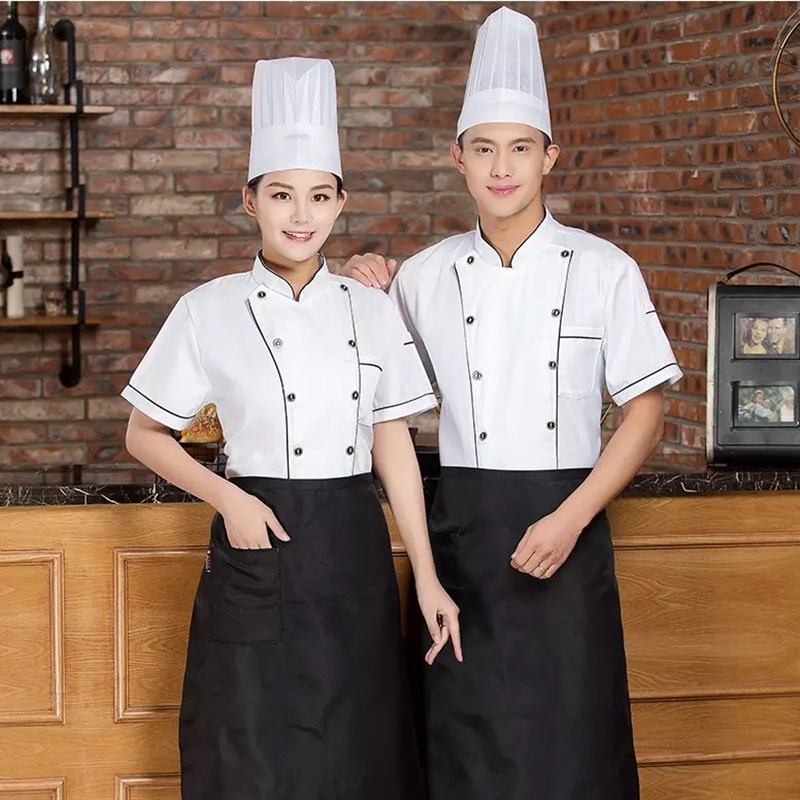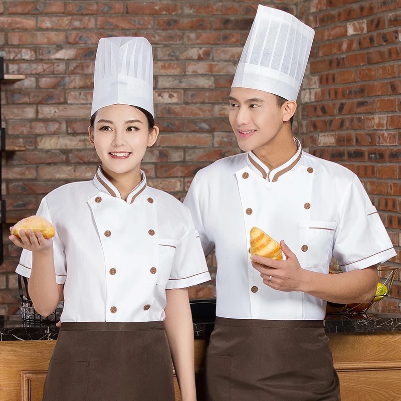 夏季厨师工作服男短袖厨师服长袖白饭店食堂餐饮工衣服后厨房夏装