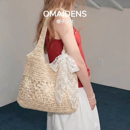 橙子少女编织包草编包女2026新款夏季海边度假沙滩包慵懒风单肩包
