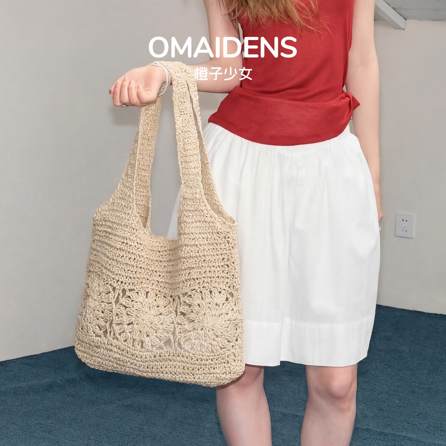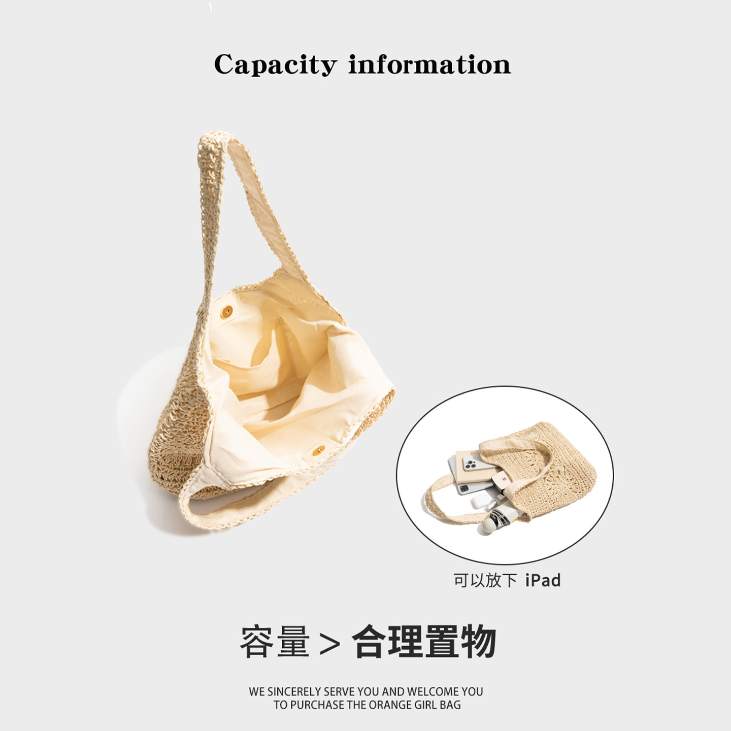 橙子少女草编沙滩包夏季度假风