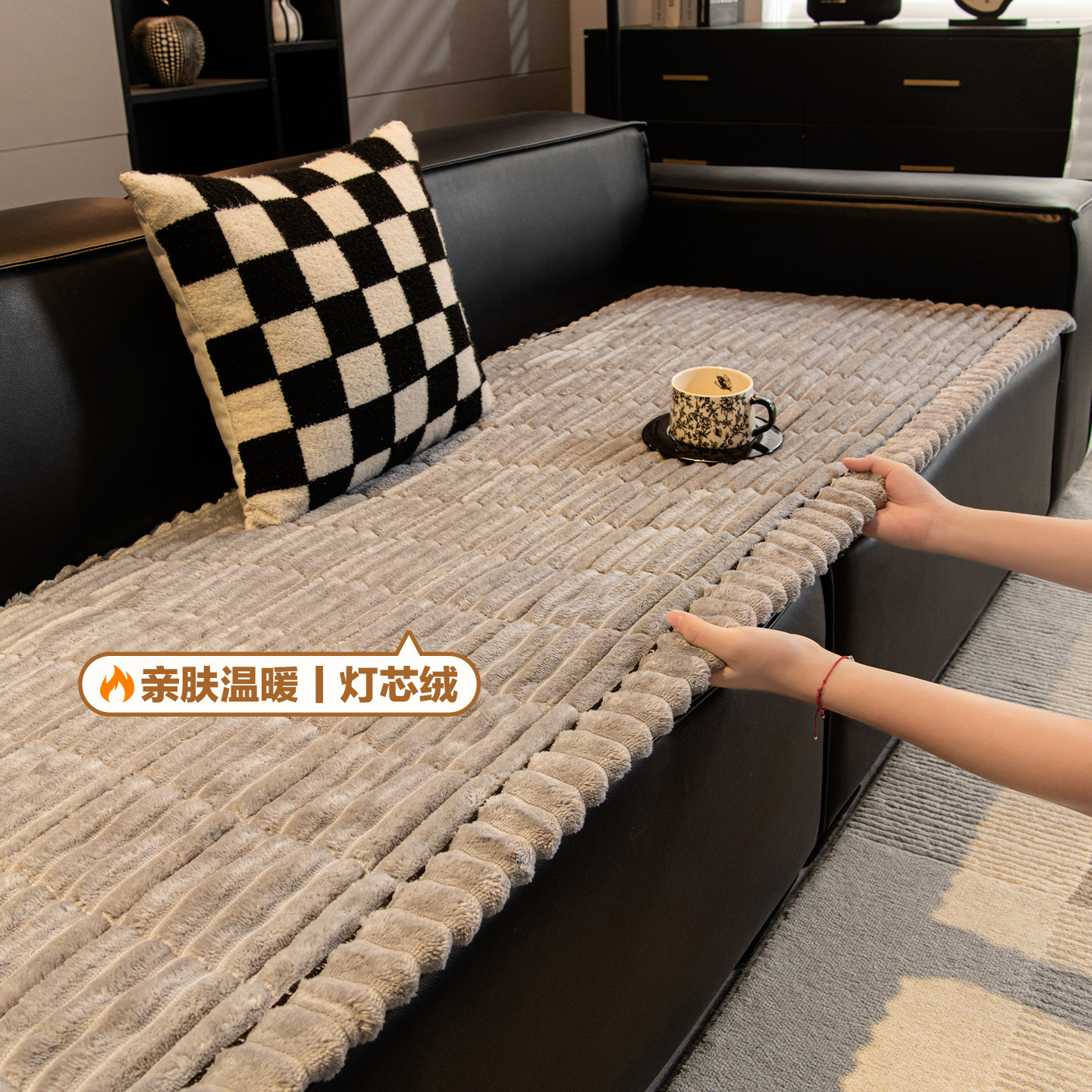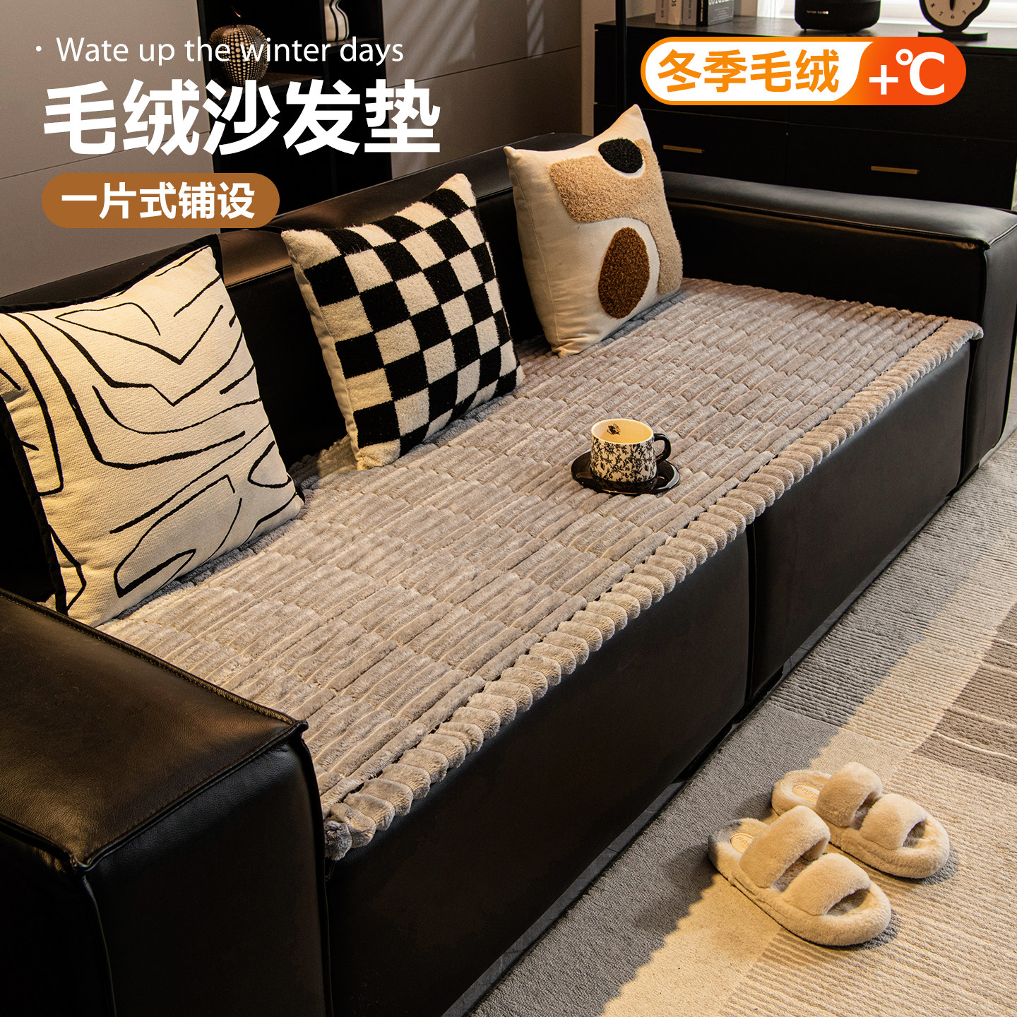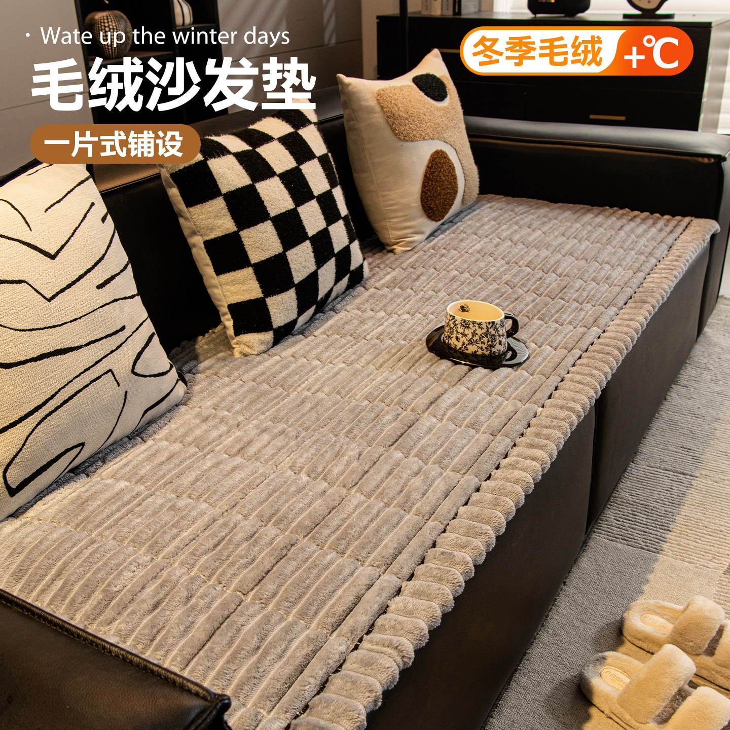 一片式直排沙发垫加厚毛绒冬季