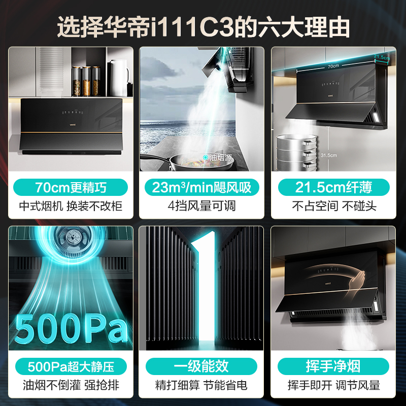 华帝烟机C3小尺寸大吸力超薄机身抽油烟机家用厨房侧吸官方旗舰店