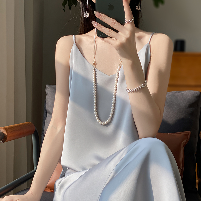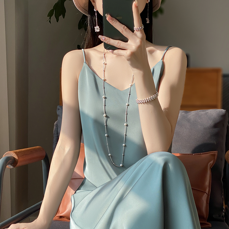 气质真丝吊带连衣裙女高端2025夏新款醋酸缎面多巴胺显瘦绝美长裙