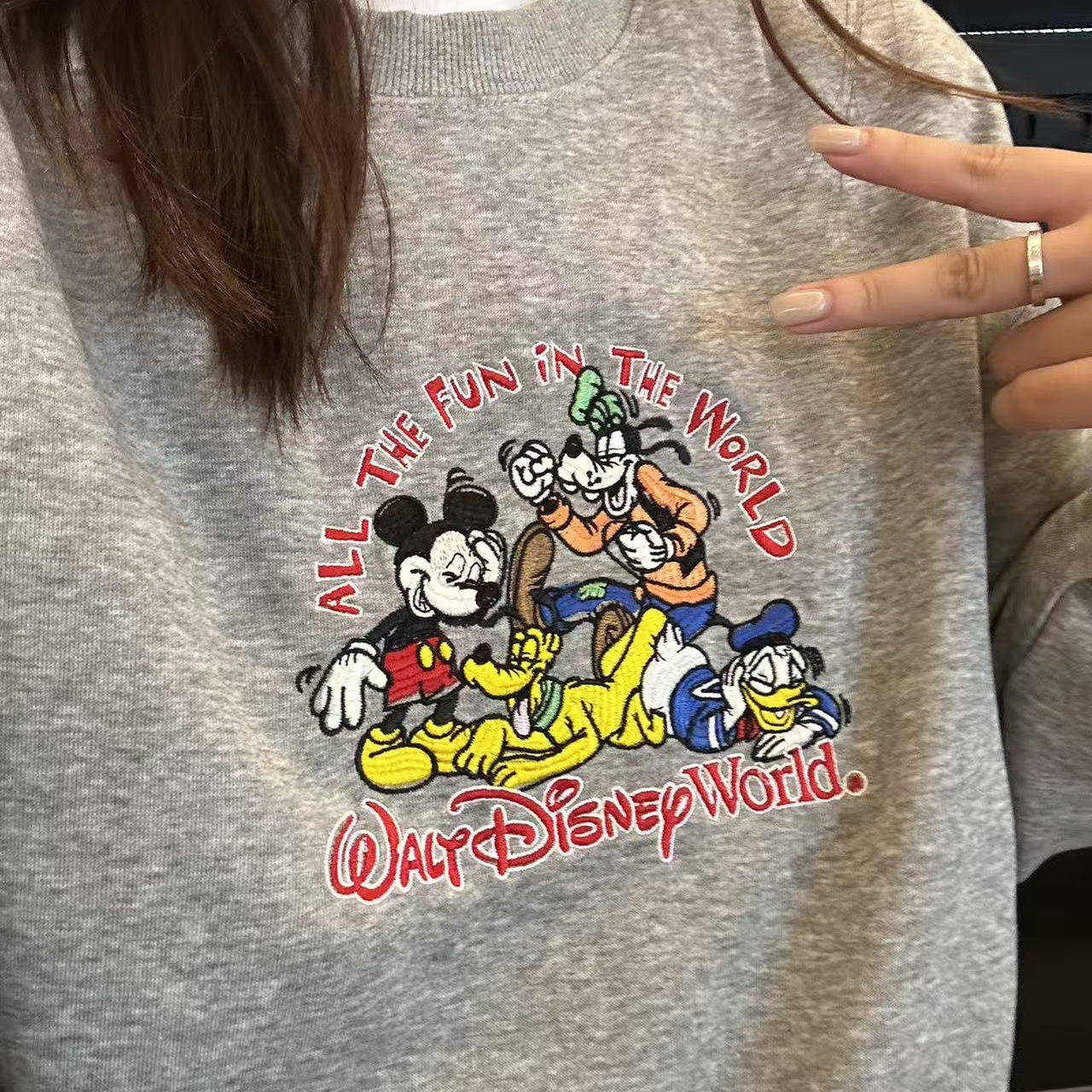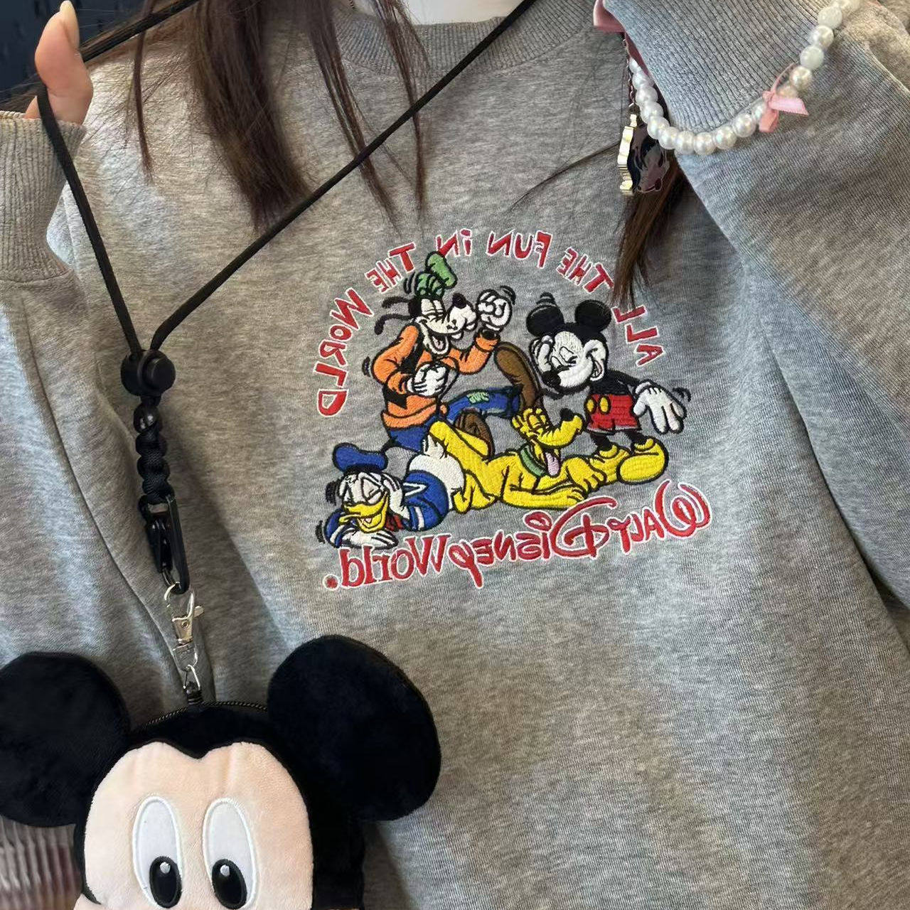 重工刺绣早秋米奇可爱漫画卡通印花通勤宽松圆领休闲卫衣情侣潮牌