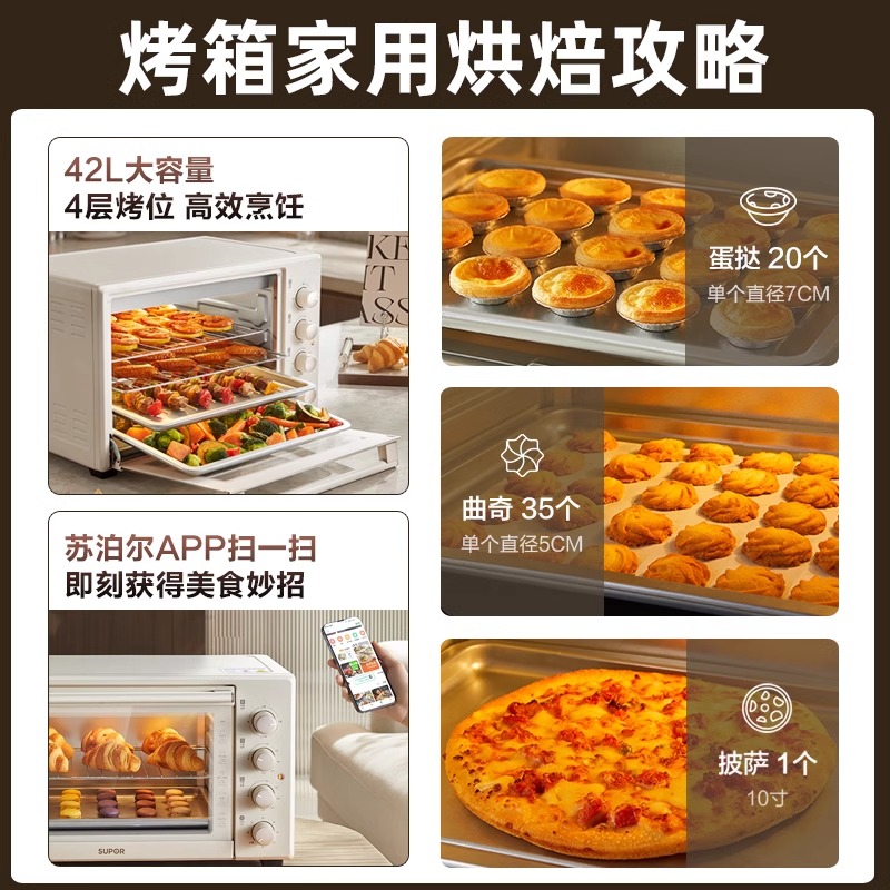 苏泊尔烤箱家用小型烘焙专用蒸烤箱一体机大容量42升官方旗舰正品