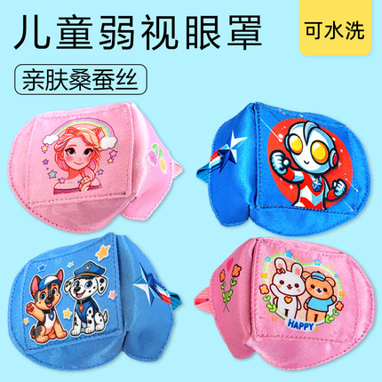 弱视眼罩单眼桑蚕丝全遮盖独眼镜罩儿童遮光术后训练矫正真丝卡通
