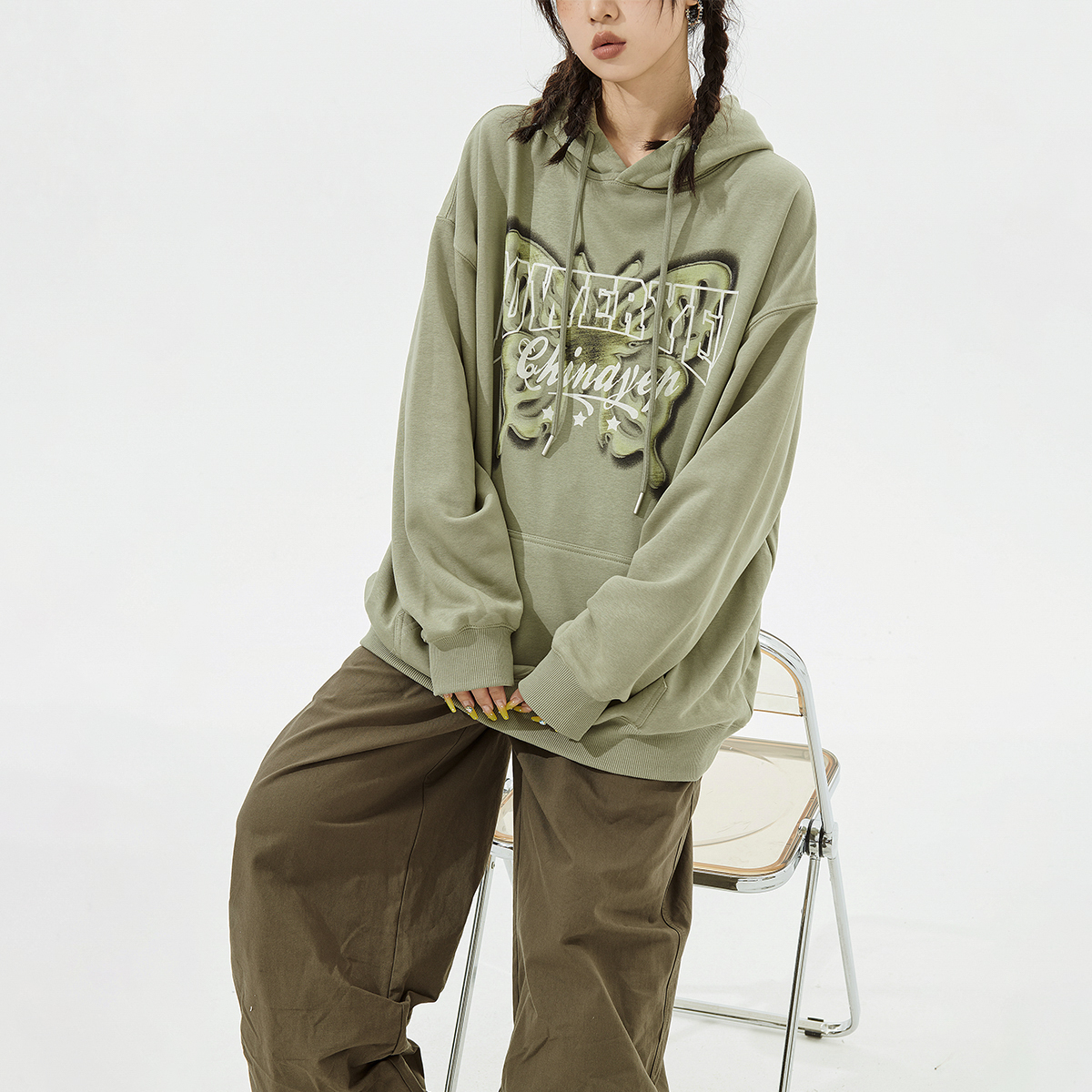 YEP美式复古蝴蝶连帽卫衣女秋冬