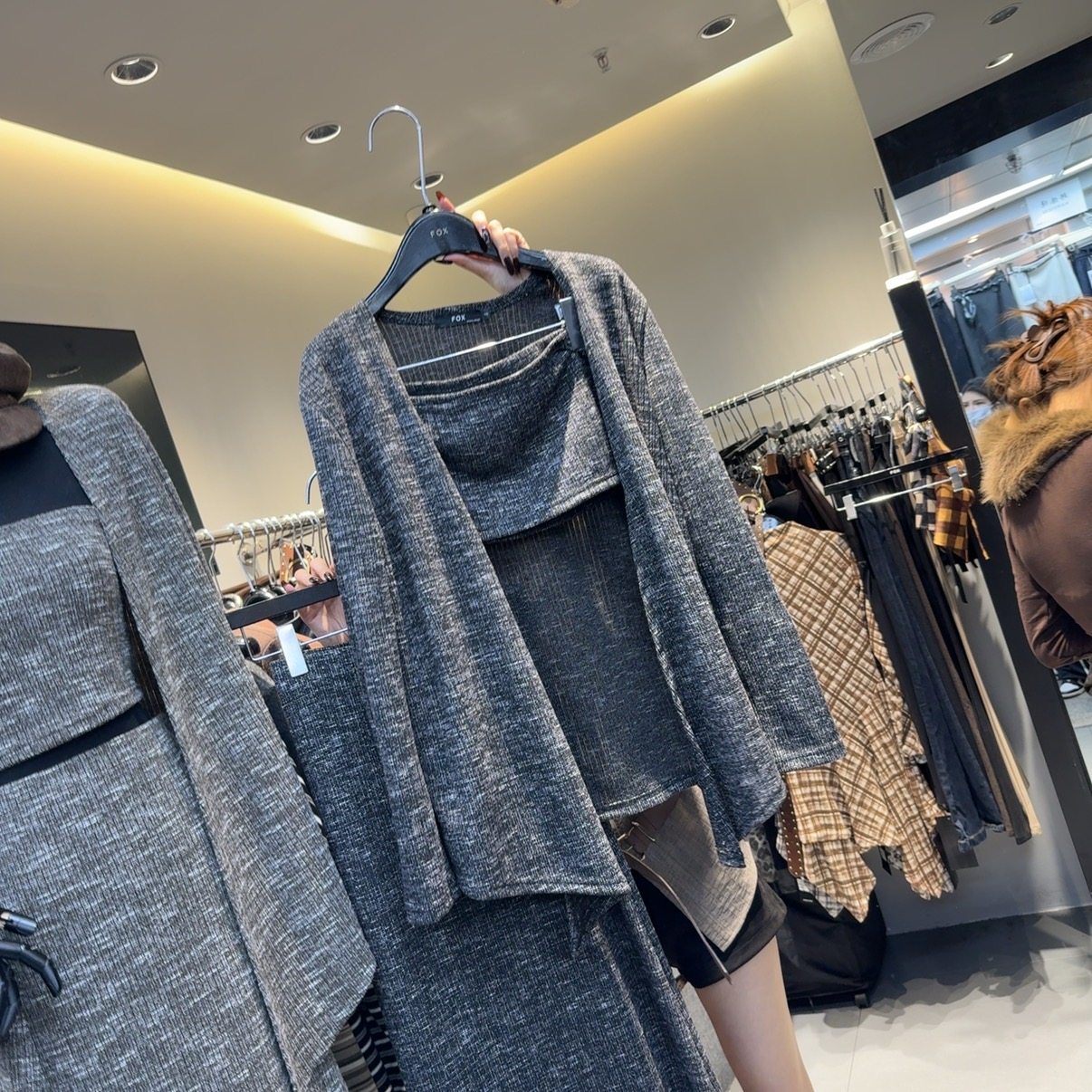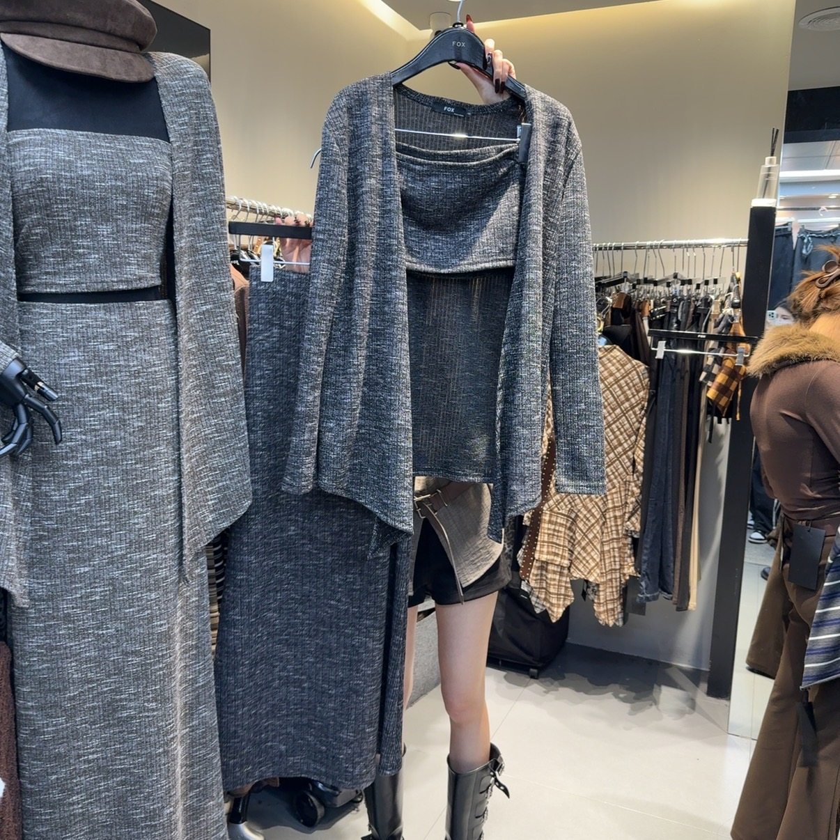 时尚气质抹胸针织开衫半身裙套装