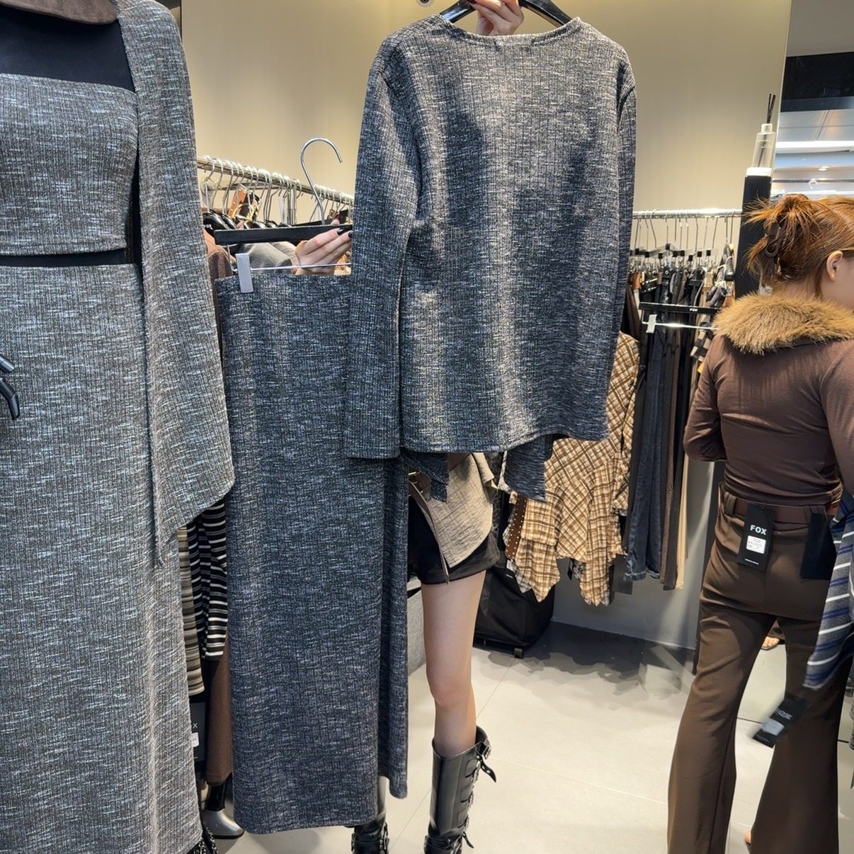 十三行现货2025秋新款时尚气质抹胸针织开衫半身裙套装S68177W212