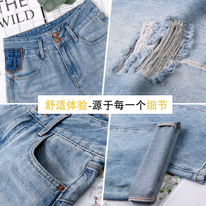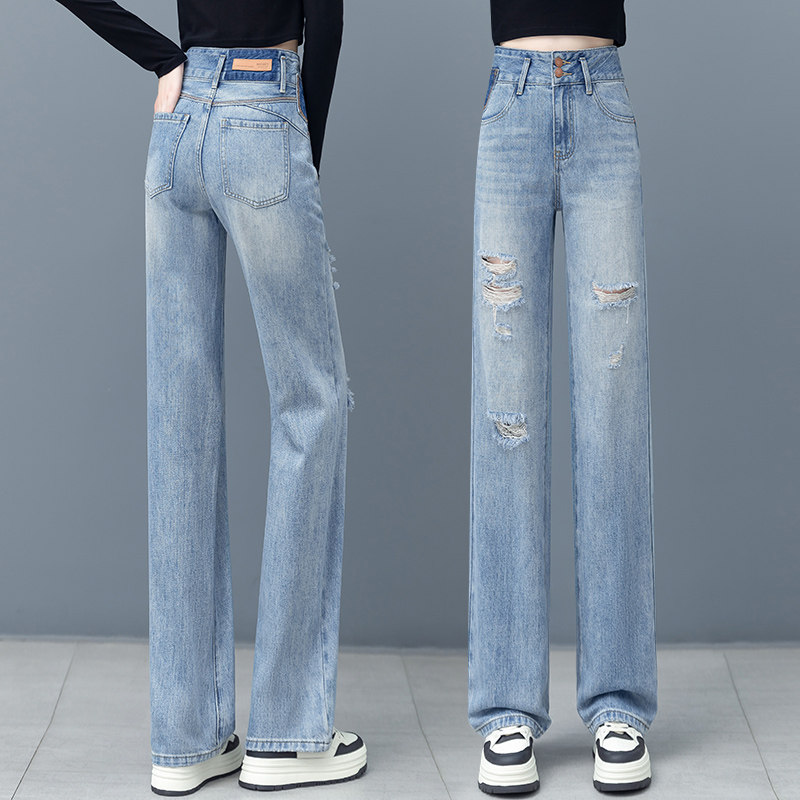 破洞牛仔阔腿裤女高腰显瘦直筒裤