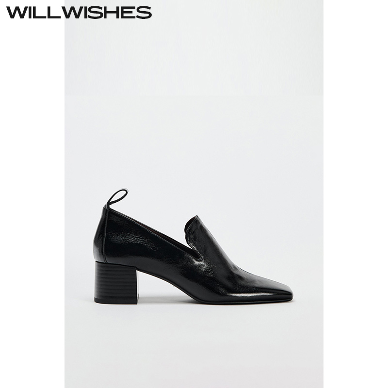 WILLWISHES方头粗跟乐福鞋女