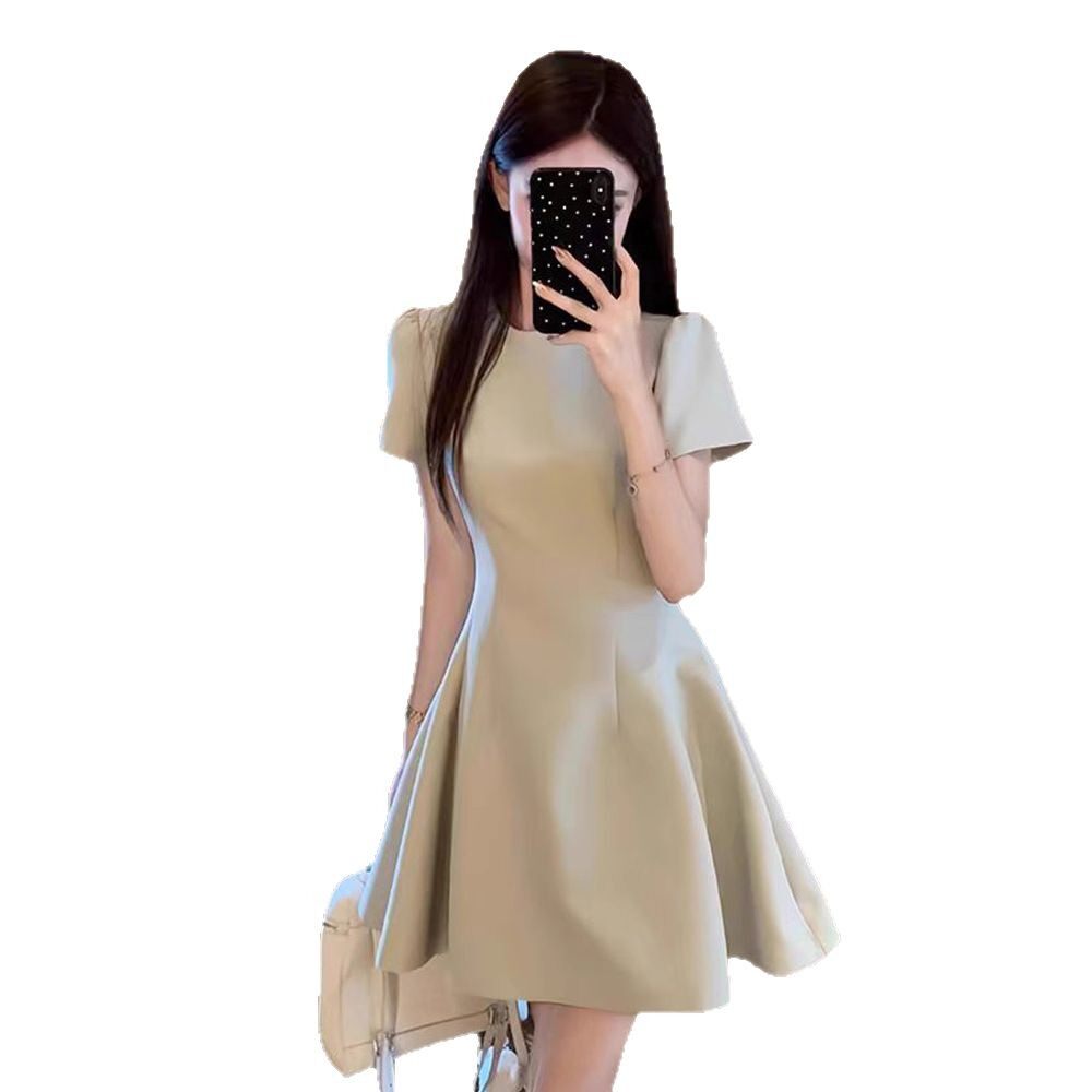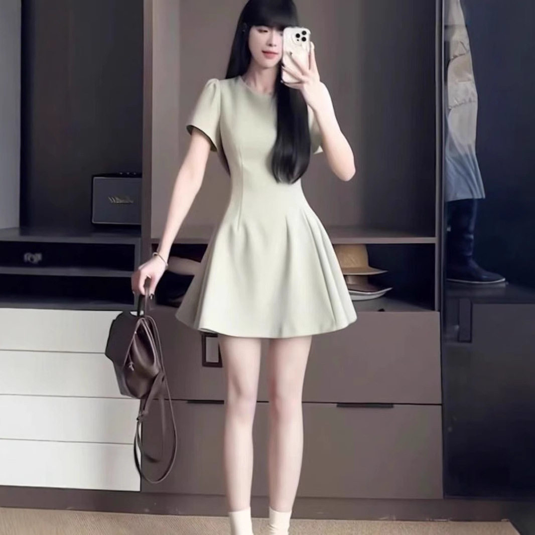 夏季法式赫本风绿色短袖连衣裙子女装气质小个子女装收腰显瘦短裙