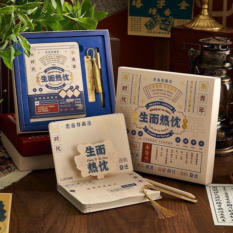 民国风笔记本本子国潮创意学生奖励本子高颜值文具礼盒套装送老师开学生日实用伴手礼中国风礼品文创儿童礼物